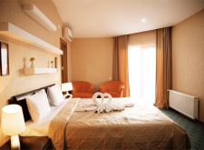 Балкон с красивым видом, неограниченное посещение СПА, мини-бар, мини-холодильник. Можно выбрать номер как с одной двуспальной кроватью, так и с двумя односпальными. Один ребёнок до 3-х лет может проживать без отельного места.