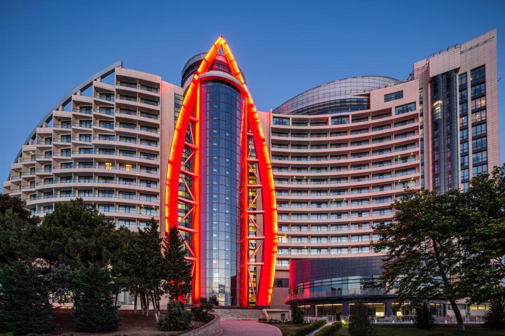 Современный курортный комплекс на берегу моря с бассейном и аквапарком. К услугам постояльцев просторные номера, ухоженный частный пляж, спа-салон с разнообразными процедурами, а также несколько ресторанов и баров, где можно попробовать традиционные азербайджанские блюда и насладиться великолепными закатами над Каспийским морем. Детям, несомненно, понравится прекрасный аквапарк с кафе рядом. В отеле разрешено проживание с питомцами, можно не беспокоиться о том, с кем оставить любимца на время отпуска, и отдохнуть в Bilgah Beach Hotel всей семьёй. |