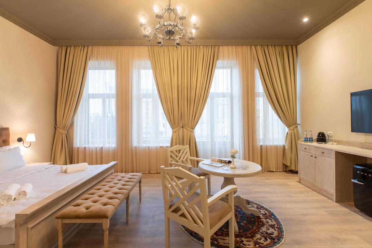 Отель "Art Club" это не просто место для ночлега, а настоящее погружение в историю и аутентичную атмосферу Баку. Он расположен в самом сердце Старого города, рядом с историческими достопримечательностями и старинными улочками. В интерьерах отеля гармонично соединены стилистика 18-19 века и современный комфорт. Ресторан порадует вкусной местной кухней и атмосферой, переносящей вас в прошлое, а винный погреб позволит насладиться дегустацией разнообразных вин и узнать больше о местных традициях. Впечатление дополнит небольшая арт-галерея, где собраны картины известных художников.